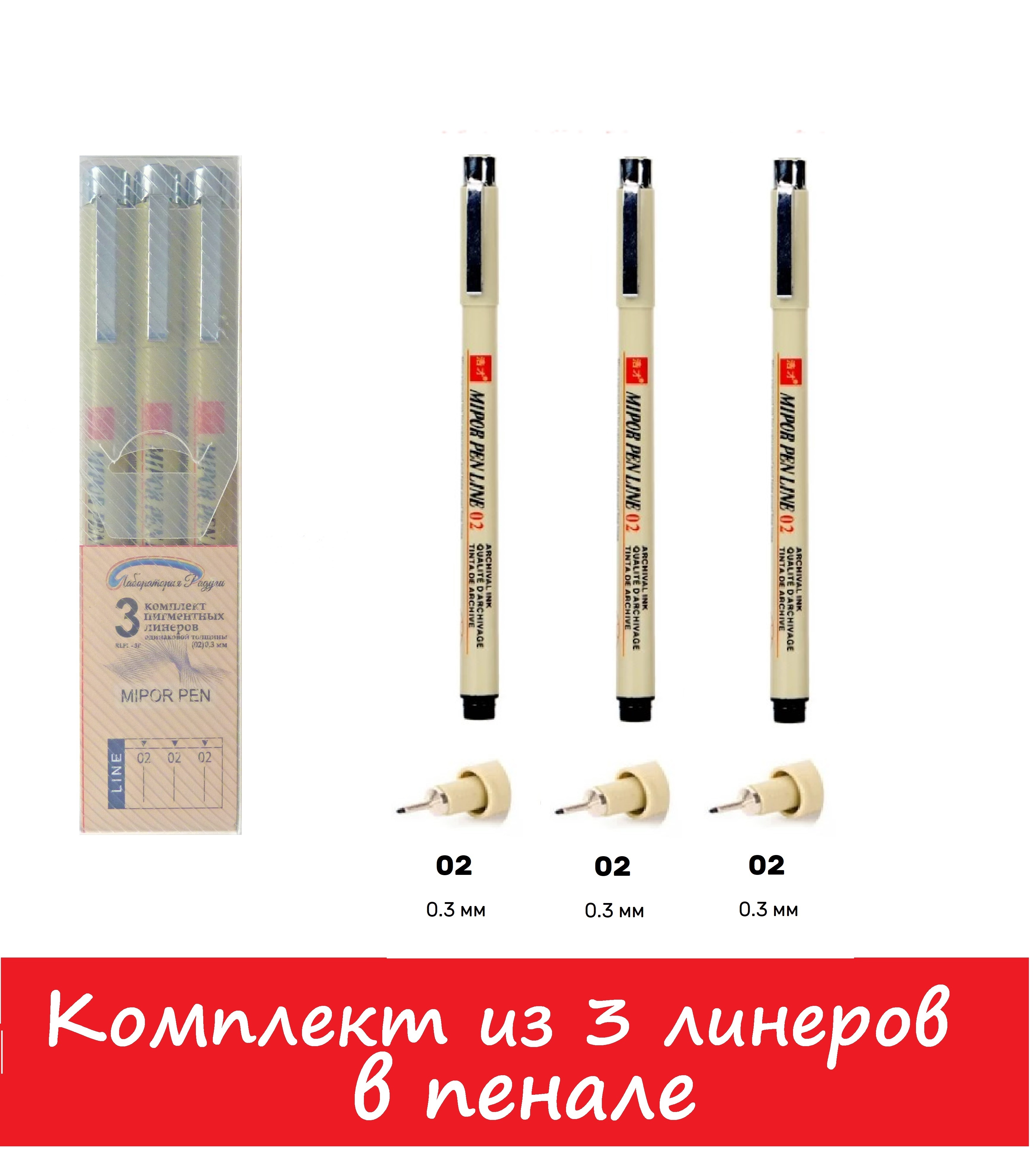 3 линера (3 капиллярных ручки), пенал