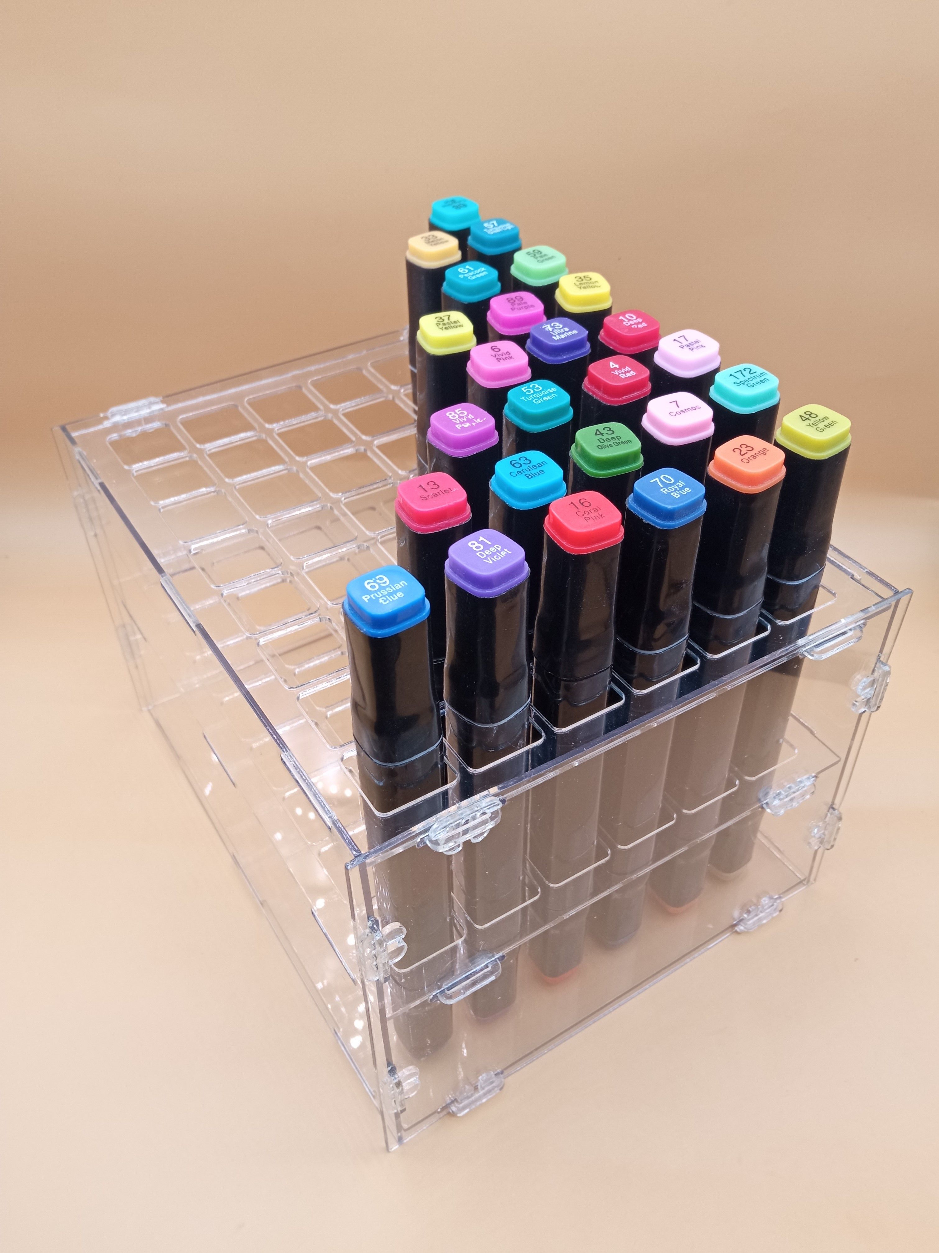 Новая запатентованная серия органайзеров от "Лаборатории радуги" поможет удобнее использовать маркеры для скетчинга. Органайзер для маркеров для скетчинга (подставка под маркеры для скетчинга), так же может использоваться как подставка для ручек и карандашей, подставка для карандашей и фломастеров, подставка для кистей вейзажиста. Подставка отлично подойдет специалистам, художникам и для детского творчества. Её можно использовать для хранения двухсторонних маркеров, скетч маркеров, для хранения ручек, линеров, для хранения кистей для рисования и как подставка канцелярская. Органайзер подходит для комплектов маркеров из 24,36,48 цветов. При хранении в этом органайзере маркеры не будут протекать и высыхать продолжительное время.